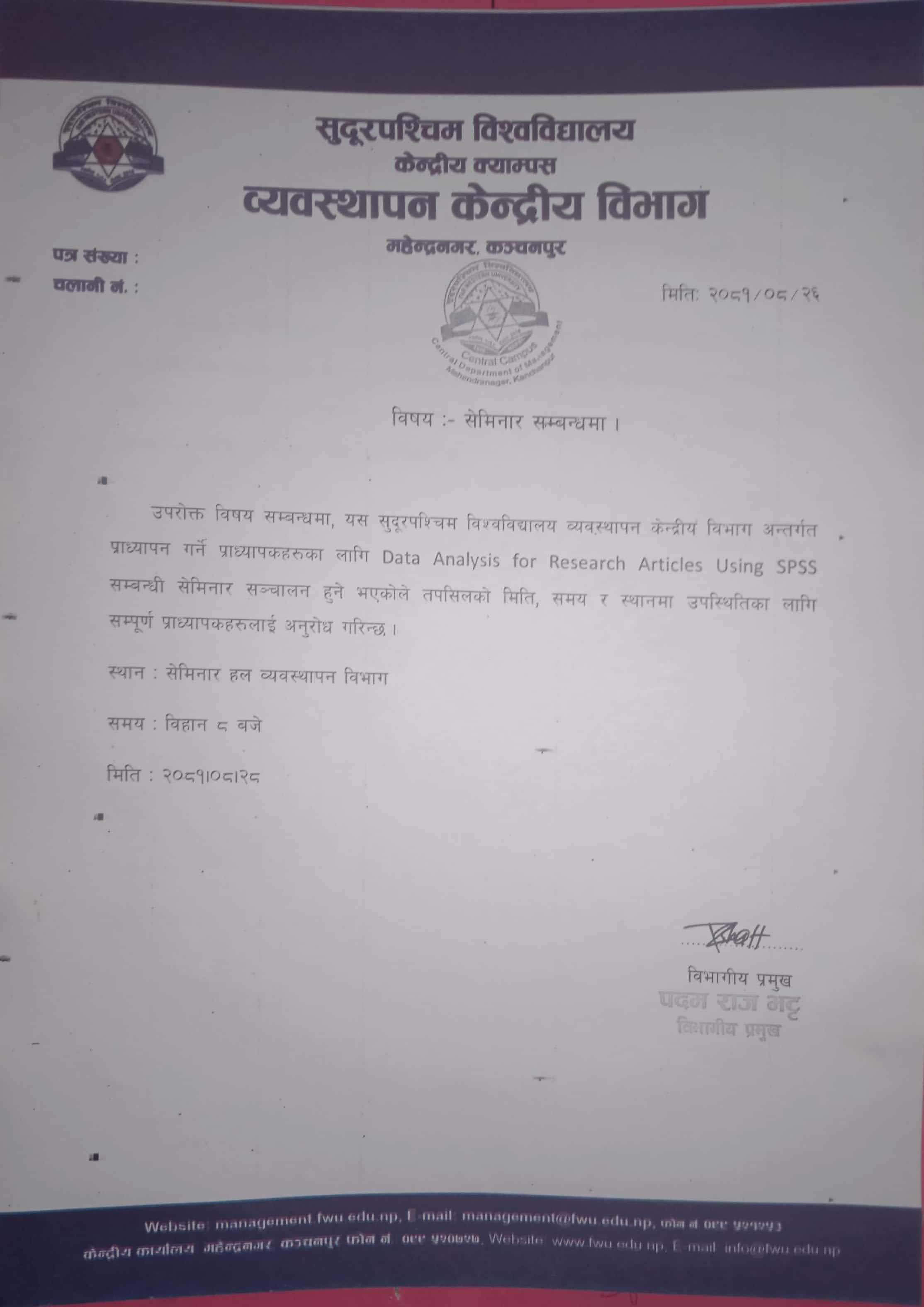BBA र BHM को मिति २०८२-०७-१५ का दिन लिईएको प्रवेश परीक्षाको नतिजा प्रकाशित गरिएको बारे