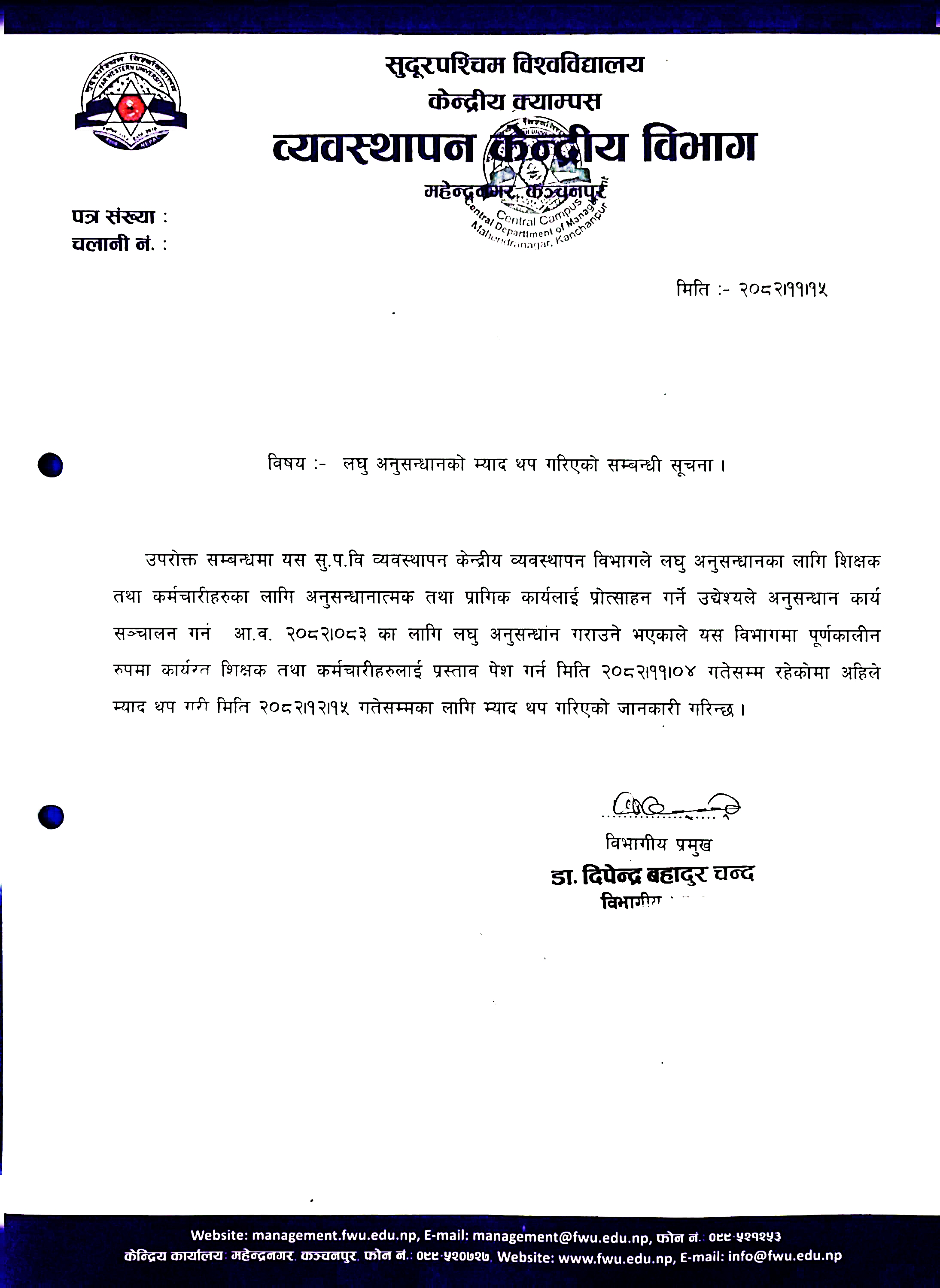 लघु अनुसन्धानको म्याद थप गरिएको सम्बन्धि सूचना!